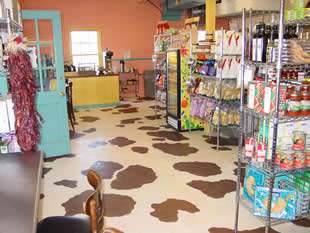 Take Route 211 east for approximately 6 miles to the intersection of Route 211 and Route 729. The Epicurious Cow is on the right.